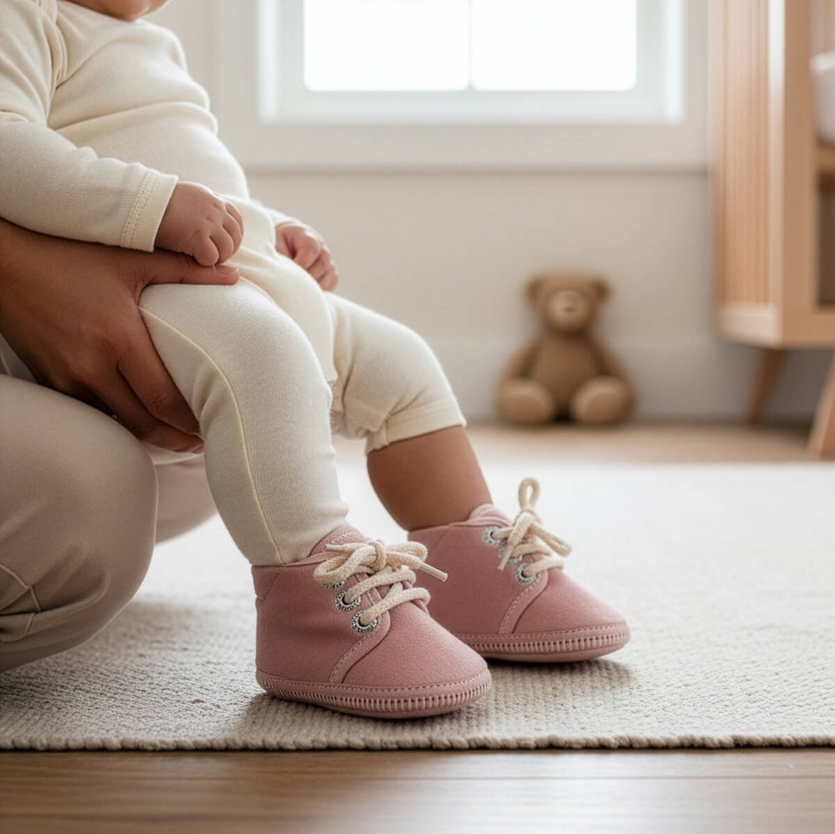 Botita para bebés no caminantes de pana forrada en micropolar y suela de PVC antideslizante.