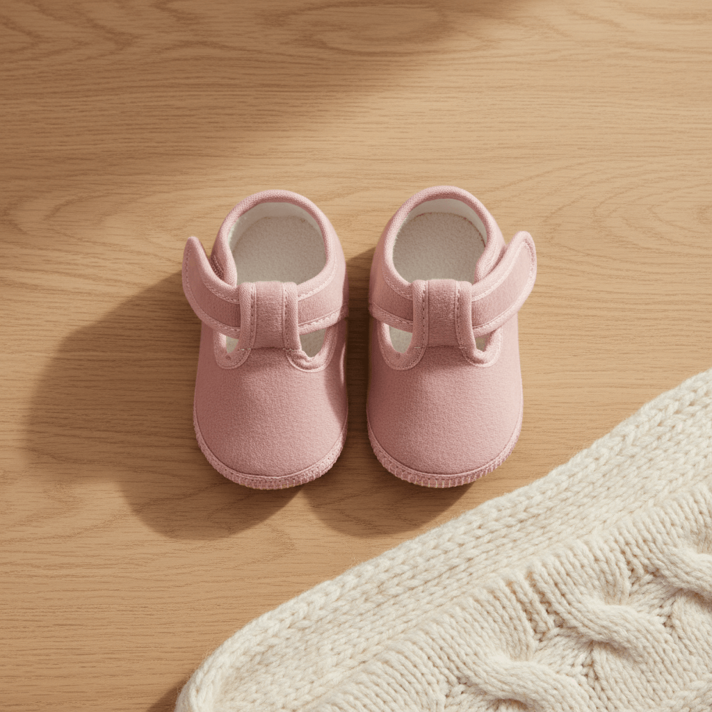 Guillermina clásica para bebes no caminantes. Exterior en «Pana Donn», interior de micropolar antipilling. Suelin de PVC antideslizante. Presentación en estuche con ventana acrílica. Calce tradicional.