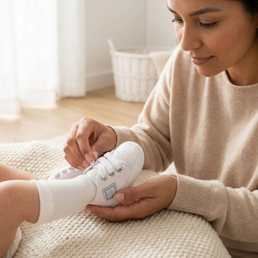Hasta los 12 meses, los pies de los bebés están formados principalmente por cartílagos flexibles, lo que los hace muy moldeables. Por eso, las suelas de sus zapatitos no distinguen entre pie izquierdo y derecho, permitiendo que se adapten al crecimiento natural de cada pie.